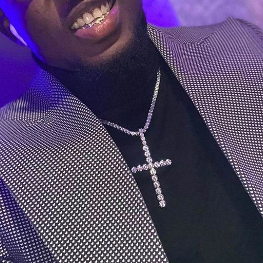 Gold Plated Iced Out Ankh Cross Pendant With Serpent